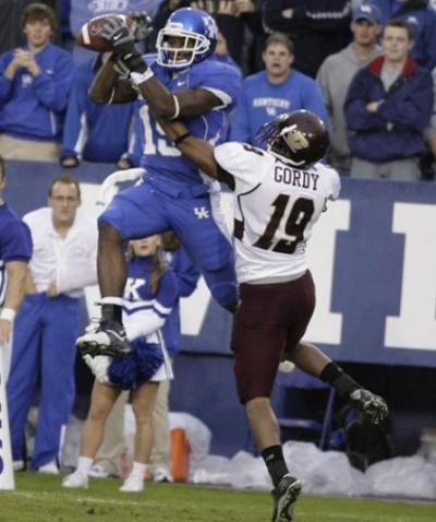 Picture of a great catch during a football game and a funny moment captured on the sidelines.