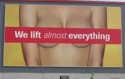 Picture of a billboard for a moving company that shows you one of the few things they don't lift.