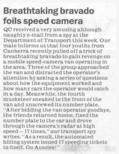 A news article about some youths in Australia who pull off a brilliant prank on a speed camera van.