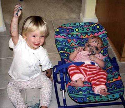Picture of a little girl who went crazy with a marker all over her helpless little brother.