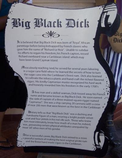 Picture of a historical sign and description about a man given the name of Big Black Dick.