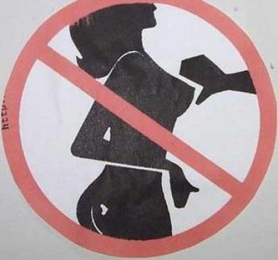 Picture of a sign apparently instructing patrons to not grab onto women's breasts...