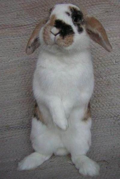 Picture of a cute little bunny standing upright with his arms crossed like some gangster posing.