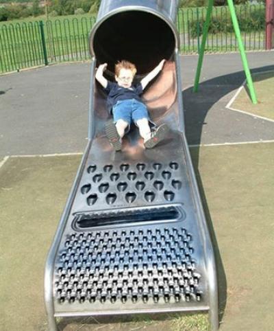 Picture of a slide that has been photoshopped so it looks like there's a giant cheese grater attached.