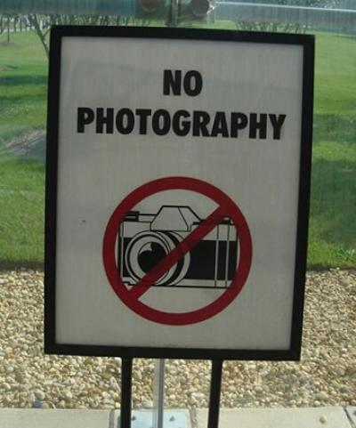 Someone feeling rebellious has taken a photograph of a sign that specifically prohibits photography.