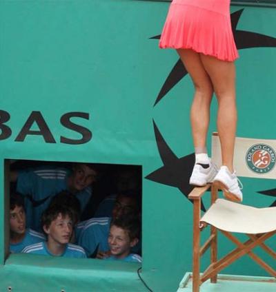 Ana Ivanovic climbs to the stands after winning the French Open and the ball boys take notice.